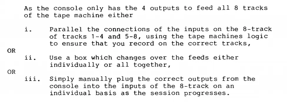 Both the 200B and the M-216 have 8 tape returns and 4 mix buss outs - I am not even sure how I would use this when recording with my 8 track as I believe the 200B manual specifies to "parallel connect the inputs of the 8 track" which I have no idea what that means (see attachment). The M-216 is a little more straightforward but I am also unsure of how to use it for 8 track recording. That said, my main goal is to incorporate these as summing consoles if possible - if not, then at least as a more robust mixing platform for my tape recordings which will then just be bounced into the daw.