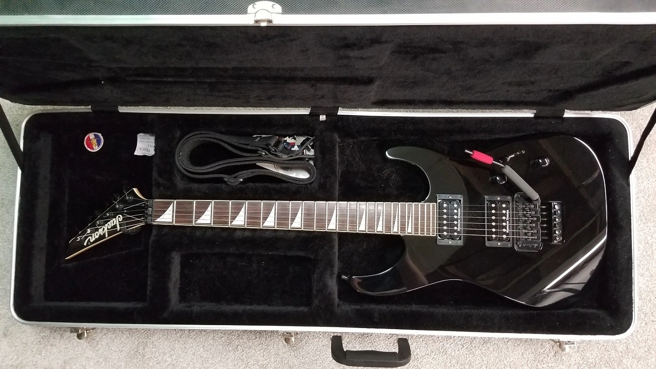 Nice one! What's with the foam on the whammy bar?Here is my shredder. A reverse headstock black beauty, Jackson. Seymour Duncan Distortion set (the older one). Jackson is a satellite company of Fender. So its like an extension of my Stratocasters. Set up like a champion.