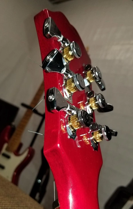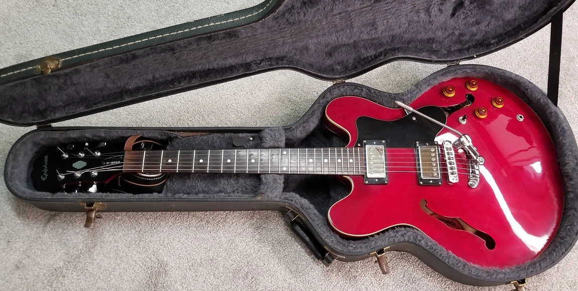 Nice!This low priced guitar looks fantastic. It was $199 I think. Plays like a million bucks. Epiphone model from when Gibson owned them, as indicated by the truss cover. This one does not have the same set up as the others. No pleking or fretboard work, or nut alterations. You can tell. .. Seymour Duncan HB-4b and SH-1n wired with Jimmy Page wiring 20+ sounds. Orange drops. Alpha push/pulls. I wanted locking tuners, so i went with Hipshot open locking tuners. The open brass gearing is cool as hell. No drilling. Then I liked the Bixby's of that 335 era, but the holes in the Epiphone body would show (ugly) with a Bixby brand tail. So i found a trem that fits the mount hole spacing, a Duesenberg trem arm system. Installs clean. Same Bixby action, more or less. It swings up out of the way when not in use. What are you thinking?