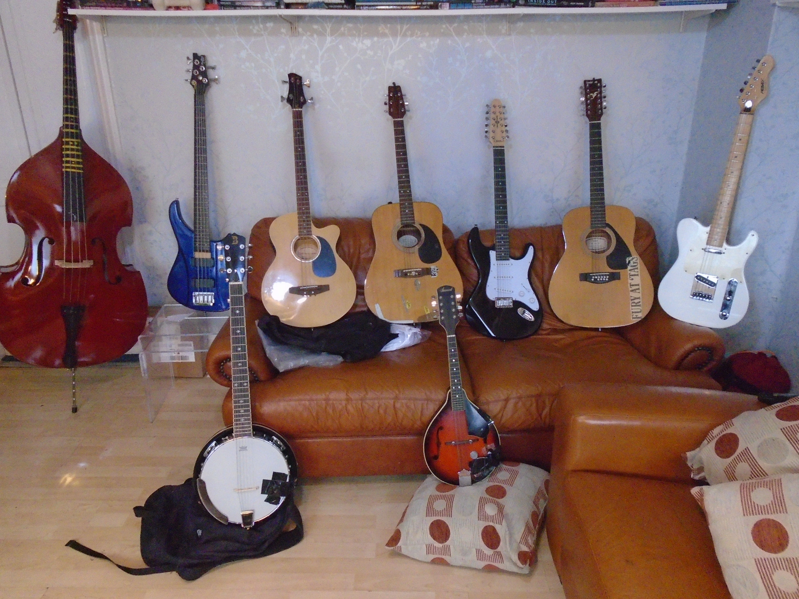 They've come over a number of years, ranging from 1990 to a couple of years ago. The acoustic guitars, mandolin and the electric 6-string are all from last century.A nice collection
