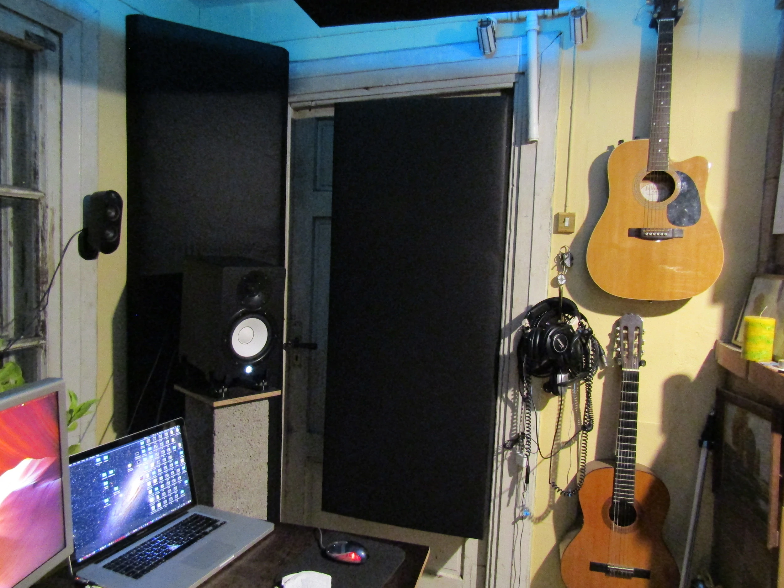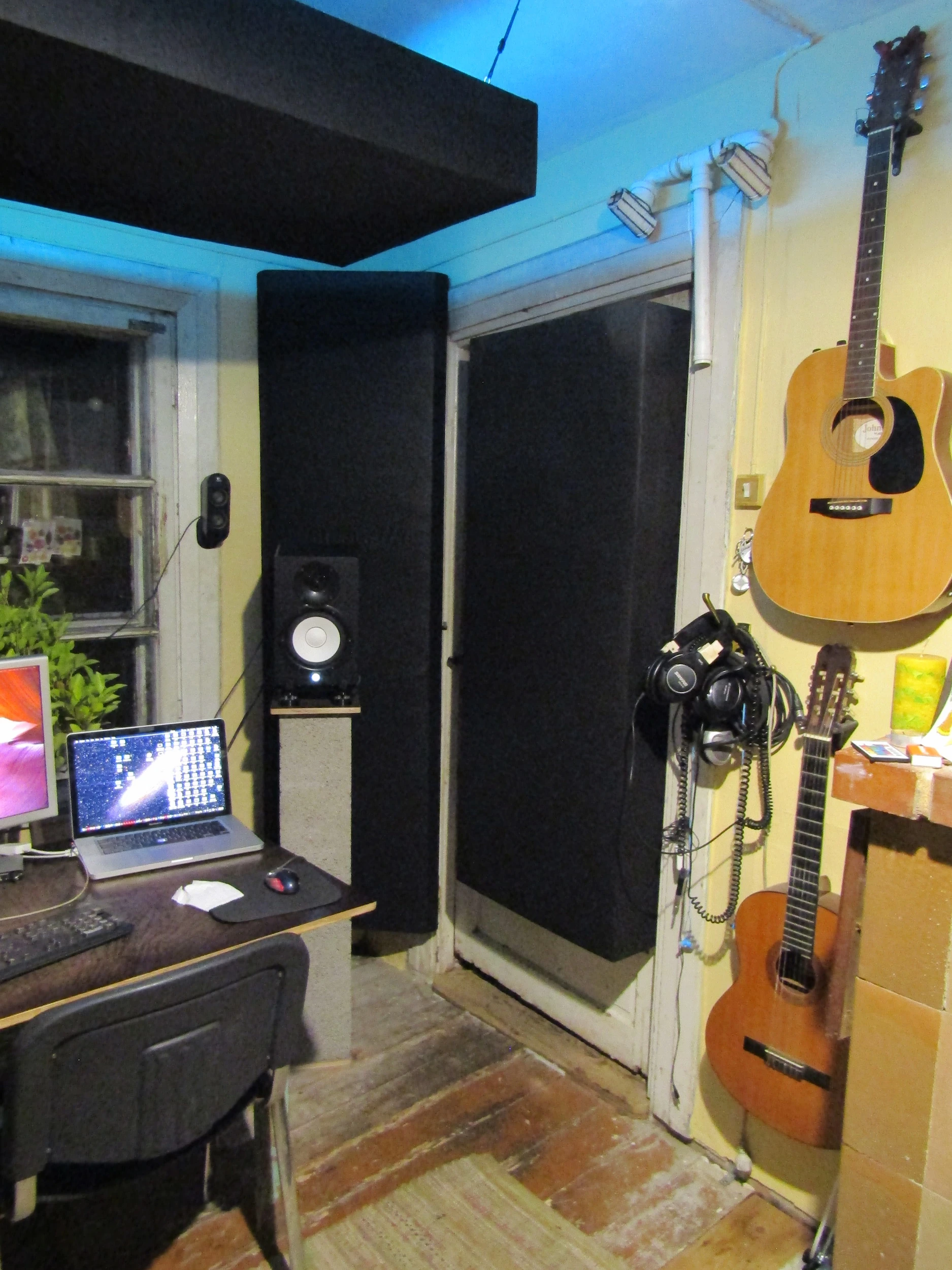 I have an odd little room (~2.4 x 4.6m (~8 x 15')) that I'm trying to turn into a temporary (-but professional as 'reasonable'-) space to mix an old album I never finished...