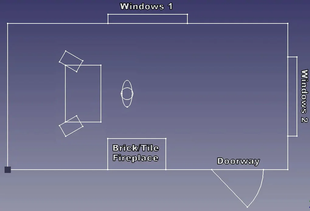 -I say "odd" because of a towering fireplace/heat-wall at the near-center of the room, which is offset about 18cm (7") from a center-line... -___- It might not sound like a lot, but in a small room this kind of asymmetry might impart some pretty annoying asymmetry in the reflections.(?)