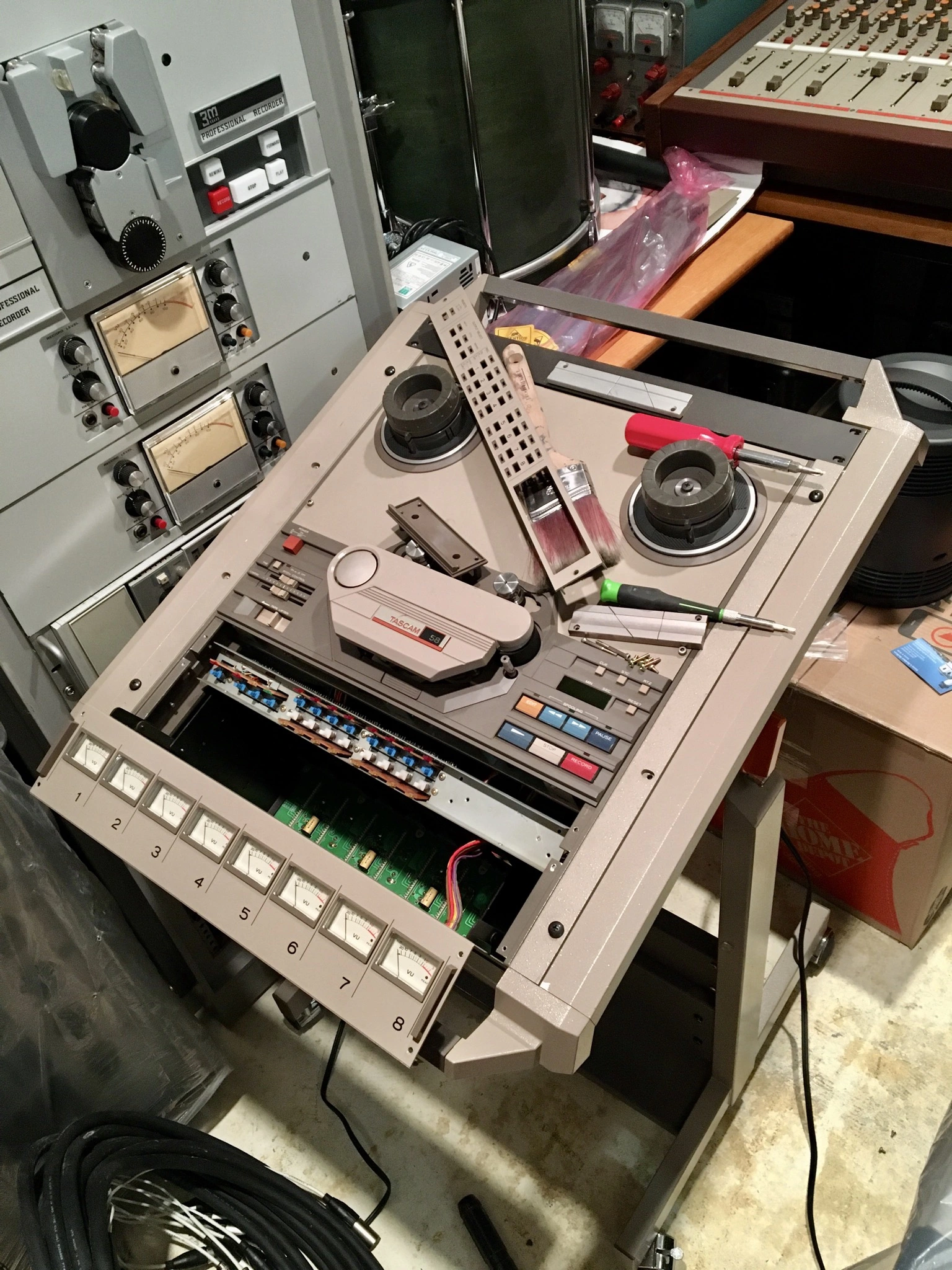 So this is cool and interesting to me. It means I have a very early 58, and the matching manual, which all must be more rare. And the 58 was touted as Tascam’s first balanced multitrack tape machine, but apparently it wasn’t so from the beginning, which explains why the balance amp board and it’s power supply seem a little kludged into the 58 chassis...the fact there is a separate power supply is a dead-giveaway it all came later. In a way it almost kind of makes my 58 an even better match for my prototype console...they would have likely been made in the same year.