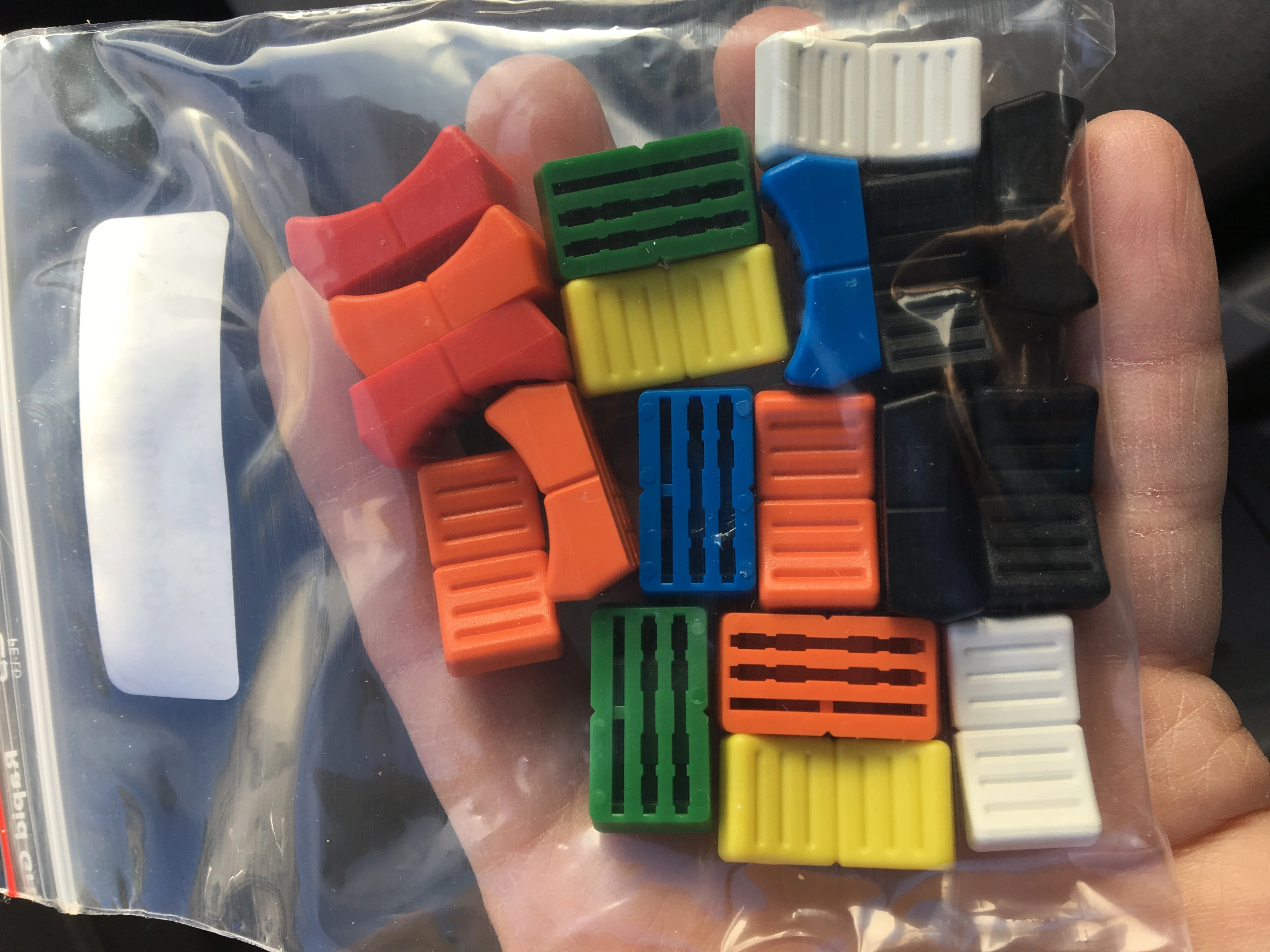 So what I did is bought enough to have at least four of each of those colors (black, red, blue, green, yellow, white, orange) on top of what is supposed to be in place in the master section and on top of the grey knobs on the mono modules…plus there are two more grey knobs already. That gives me enough to populate all the mono input module and master section faders on the console as it came from the factory, and then I have enough to use colors on the stereo modules plus have 14 spares in different colors. So I’ll probably typically keep grey for live sources…I have a total of 14 of those grey ones so that will cover the 12 mono mic/line modules, and then I’ll have two more if I’m using a couple of stereo channels for live sources when recording. Then I have all those different colors for the rest of the 16 stereo modules…one color if I’m using a module or two as a stereo effects return…there are four assignable effects returns in the master section, but sometimes the EQ and insert functions will be nice to use on an effect, and for sure the stereo width control on the stereo modules will be great on stereo delays or reverbs…flanger…any stereo effect, really. And then other colors for keyboard tracks, or drum tracks…guitar tracks…vocal tracks…you get the idea. I don’t know why I get so excited about these little details…