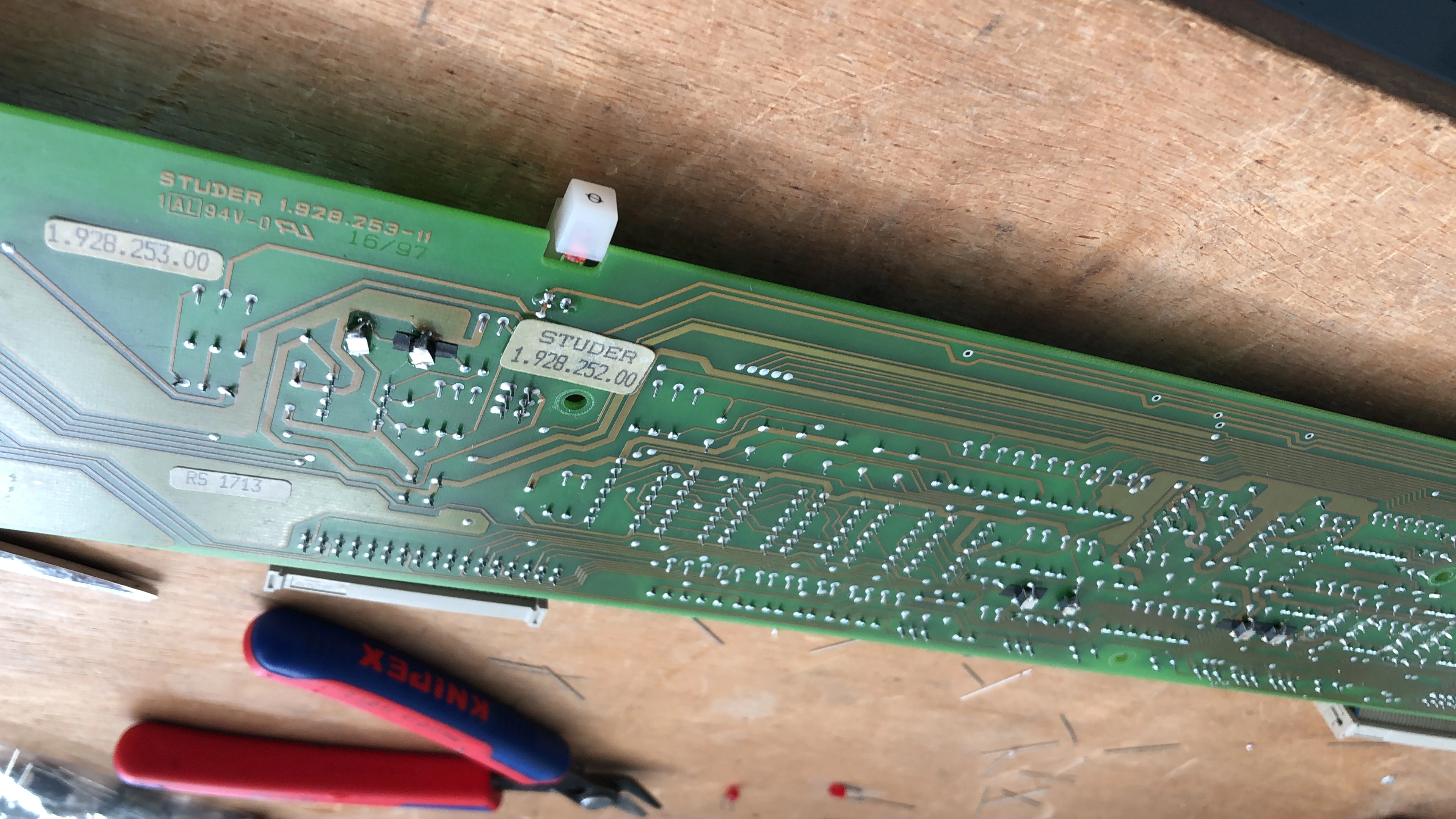 The same colleague was at an intership at Studer during studies in 2002, one of the enineers at studer told them the Phillips electrolytics weren't the best caps, and they replaced them somewhat around 2000. I don't know the exact sell date, and i did not remove every module so far, but the ones i saw seem to be produced 1997 for the stereo and 2002 for the mono inputs, so no more light blue phillips any more on the latter. (ALL inputs are transformer coupled btw)