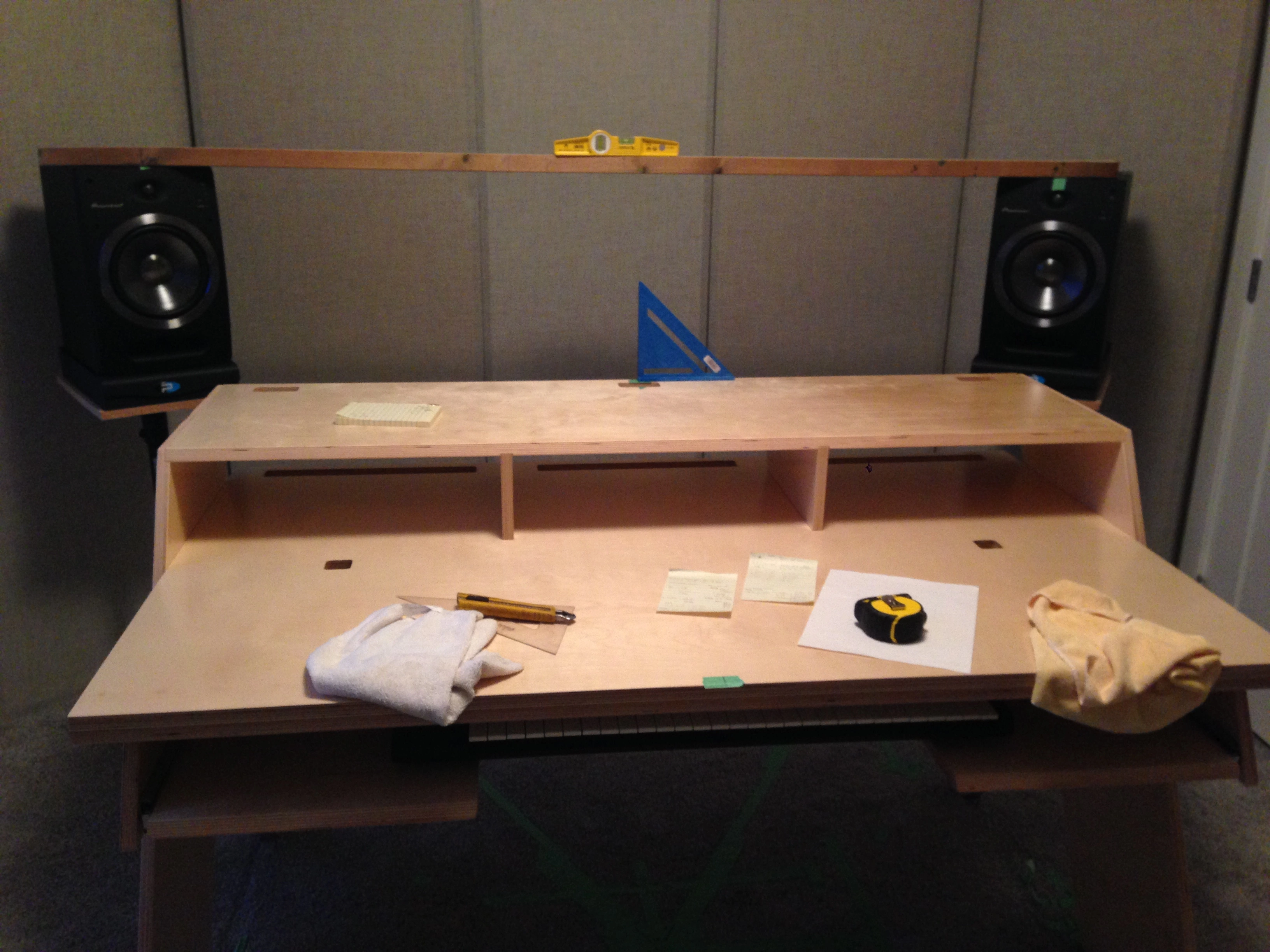 I still need to build first reflection side absorbers to mount on a door and partially cover a window.