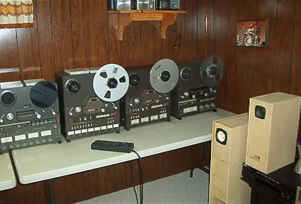 As for computer usage, I just use the computer to mix down. I've got a Delta 44, so I can mix down to up to 4 channels, but usually use just two. Once in a while I'll send a track, like a vocal, straight into the 3rd or 4th channel on the Delta, that way I can tinker with some specific digital computer effects, but I don't like doing that often. Many times I mix down concurrently to analog 1/4" (I have a Tascam 22-2 hiding in the back there) for my own reference.