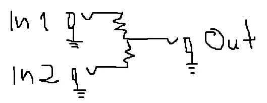 It would be great if this can be done passively. I don't need switches, send/returns or pots for blending or mixing, just two inputs and one output. I'll set levels with the effects' level control. I have lots of stuff laying around, enclosures, jacks, resistors etcetera. I guess something to sum signals can be made easily, I just don't have the skills to come up with something myself considering stuff like impedance.