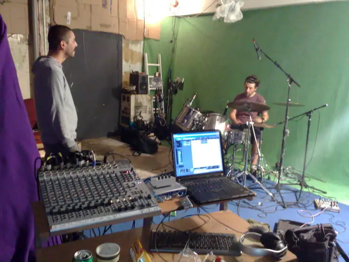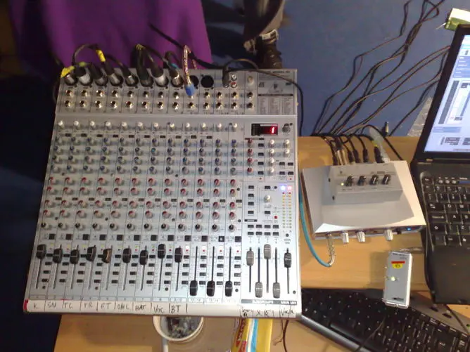 It was a very limited recording session I only had a two channel sound card so recorded the vocals on one and the backing track with a live mix of the drums on the other channel..