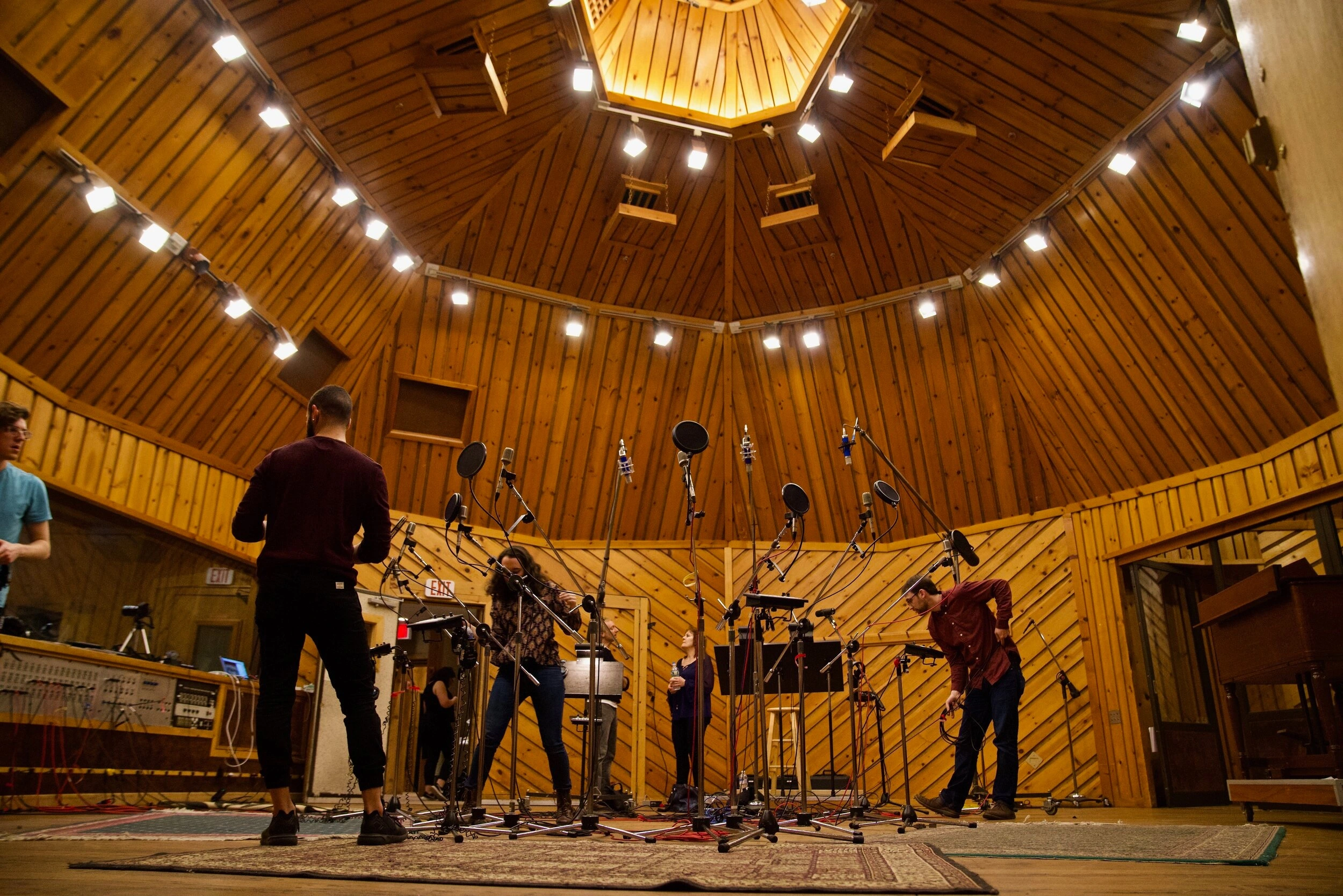 I know this is far from a home studio. I just tripped across this place in my morning meanderings - The Power Station Berklee NYC. Around here, we have lots of talk concerning reflections in small rooms and taming them with various panels, bogos, carpeting, tile, etc. When I saw this pic of the studio, I just thought WOW! Not a lick of sound absorbing materials on the walls and ceiling. A few throw rugs are used in this one pic, but I wonder if they're just to accommodate the artists.