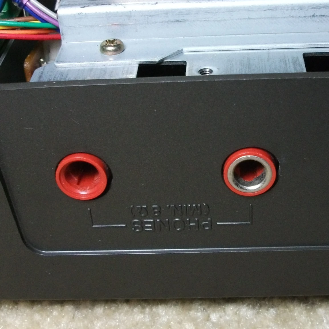 I'm going through a Tascam 246 that I bought locally some time ago, testing functions, cleaning up melted rubber etc.. and have found something rather odd. The photos attached below show the "monitor B pcb assembly" being bent at the front end, what looks like that orange oval capacitor pressing on the headphone out jack (which is modular, is only held by metal clips and plugs into the monitor pcb). I'm thinking to remove the clip, loosen up headphone jacks so that bent pcb straightens out but then what? I can't really reinsert the jacks without bending the pcb again, unless I actually bend the capacitor to one side, which actually worries me, haven't done that before. Does anyone see a simple clean solution here or something else I might try?