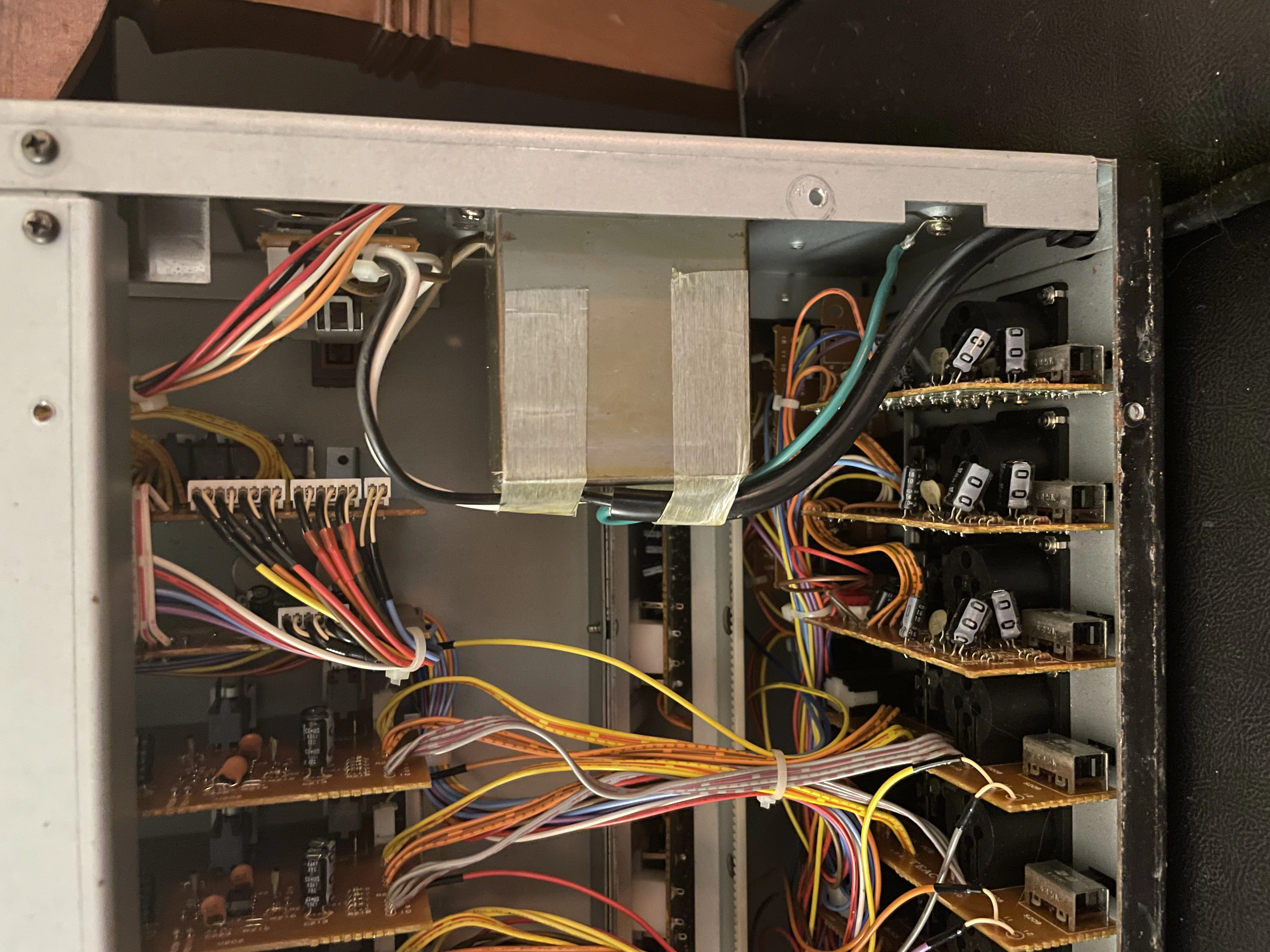 Assuming I have it and we strike a deal (I’m told I’m pretty reasonable…I’ll reach out to you directly if/when I find the transformer), what I recommend is that if you can, install it and then isolate the power supply PCB to test it before powering the whole console. I can’t recall if you can unplug the outputs of the power supply on an M-300…I’ll know the answer if I find the transformer because I also have I believe a complete power supply PCB assembly. But anyway if you can disconnect the outputs of the power supply, that will isolate the rest of the console from the power supply, so if there’s a problem with the PSU you can power it and let that tell you there’s a problem (smoke, stink, etc) without potentially damaging anything downstream. And you can measure with your DMM to verify the correct DC voltages at the outputs, and also measure for AC volts…should be at or very close to 0 AC volts at the DC outputs…like not more than a few mV AC. If you have an oscilloscope that would be even better to use to check. Anyway, I’m kind of getting ahead of things since I’ve still got to go hunting for the iron.
