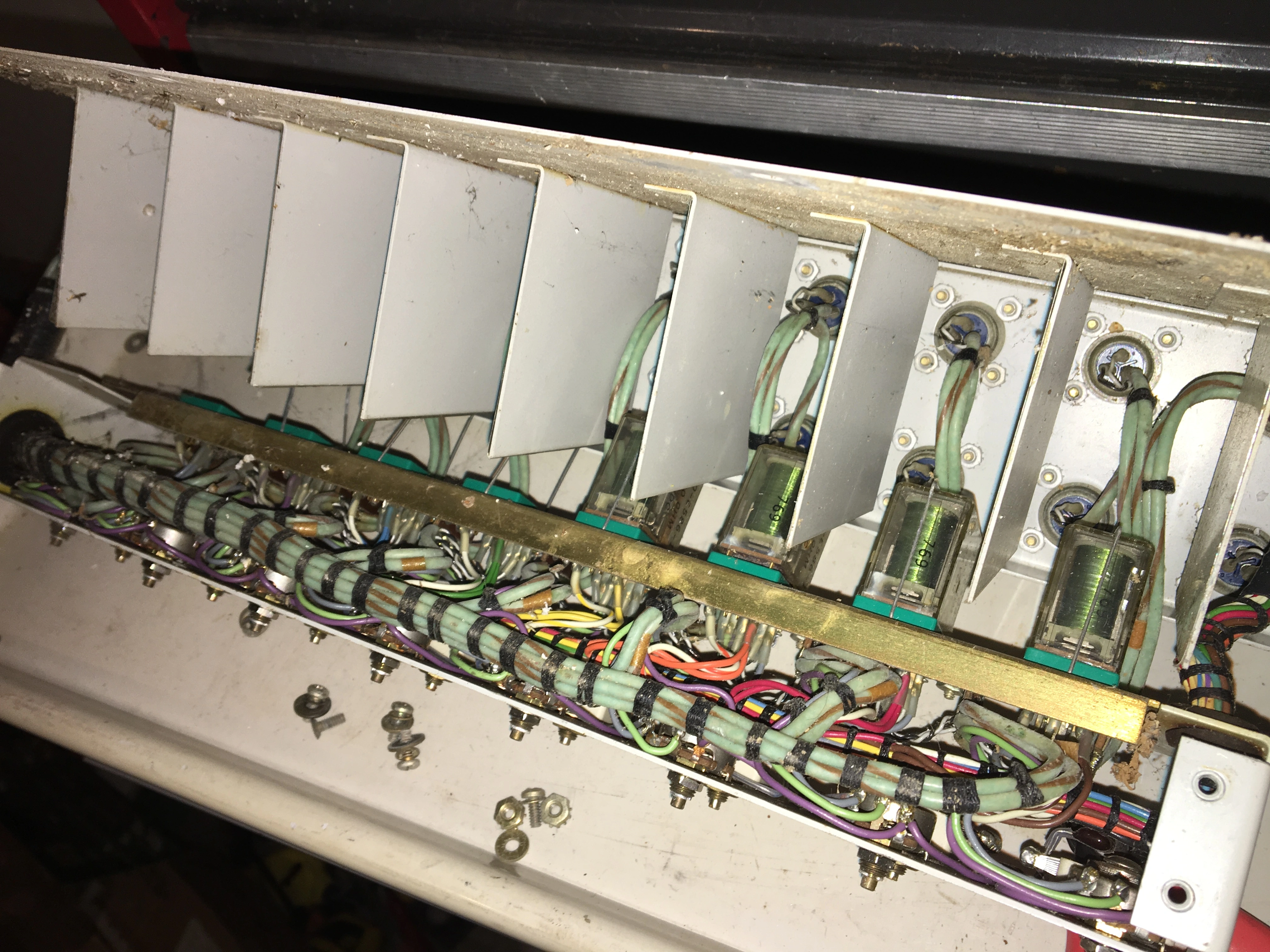 I was originally not going to touch the EQ section in my list of I/O module changes/upgrades (such as replacing feedback resistors and changing out some of the opamps for critical amp stages), but I was having some fun the other night doing some experimenting and was A/B testing between a module with stock EQ, and one with some different opamps. There was a difference. Not earth-shattering mind you, but impossible to ignore. The bottom-end was more potent particularly on pedal tones…like there was more clarity and sustain for a given passage of music…the high-end had more detail to it, and overall the mid-range had more life and sass to it…overall when I’d switch back to the stock module after monitoring the modified module the stock module sounded lifeless and constrained. But when I did some DC offset testing I found some of the parts I’d normally like to use were maybe not happy where I was trying them out, so in order to get a better handle on what amp stages in the EQ section are important to the audio path, and what might work and what might not work in each of those stages as far as parts, the circuit needs to be reverse-engineered and the schematic drawn up. So that’s another project I’m working on in the periphery. This is easier than the Control Room buss circuit in the Control Module to reverse engineer since the PE-40 equalizer is a close cousin to the M-__ EQ, and I have the schematic for the PE-40, but its still a pretty complex circuit (for me)…one LPF, two HPF’s, and four EQ bands, swept hi and lo bands and two fully parametric mid bands…12 amps stages all together…anyway…