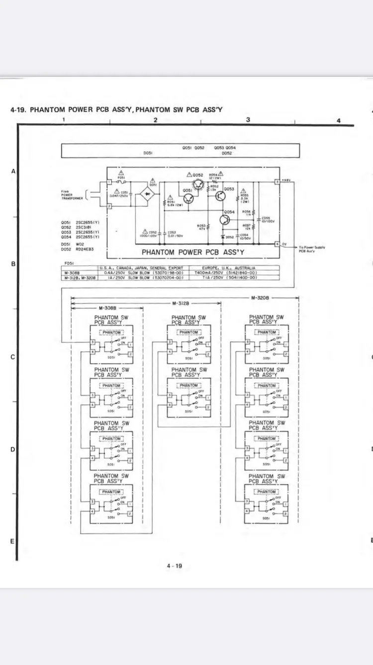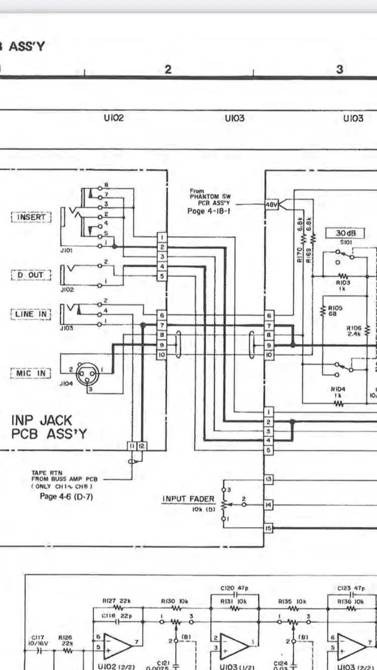 So my first question is how many condenser mics do you need to power? If it is just a couple, I would 100% just get an external phantom supply. Don’t hack up your M-320. You could totally do it. I think you can get the M-300B manual supplement pdf online somewhere, and the info for the phantom circuit with it. It’s simple enough…but it would be a decent amount of work to incorporate on a non-B model. I don’t think the non-B main transformer has the secondary taps to power a 48V regulated supply. So it’d be easiest to just get a used open-frame modular supply, like a Power One or Lambda supply…and then you’d need a bunch of DPST switches, the output of the phantom supply daisy chains through one side of the switches, and the two poles of the other side of the switches each connect to pins 2 & 3 of an XLR jack, each leg through a bias resistor…Teac spec’ed 6.8K for those. A lot of times you see a small value film cap in there too I think to deal with any DC spike when switching, but it’s not necessary.