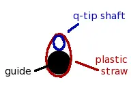 Oh yeah, note that in my diagram, the bottom of the picture is the tape-facing part... the top, with the q-tip shaft is the back side, facing away from the tape.