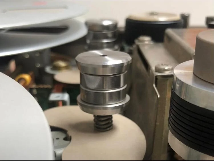 Second question is : on the 58, while transport functions seem to be working fine, I have a little trouble with the two tension arm rollers. According to the attached picture, is this the right way for them to be set up ? The washer on the pic is present in only one of the two tension rollers, I guess that's a problem. I'd like to know the specs of that washer so I can purchase another for the other roller, and also if it's supposed to be placed at the bottom of the assembly or at the top ? That's not shown in the manual. I'm not sure if the two rollers in the middle are supposed to move and roll freely along with the tape movement or if they're juste supposed to be "static" while the tape runs across them. In any case, the quick tests I've done showed that the tape rubs against the rollers but the rollers themselves don't move. Maybe I've screwed up the assembly of those rollers in a way I can't quite understand, but when I screw the top part the pressure of the spring on the bottom makes it impossible for the two middle rollers to move freely when tape is rolling.