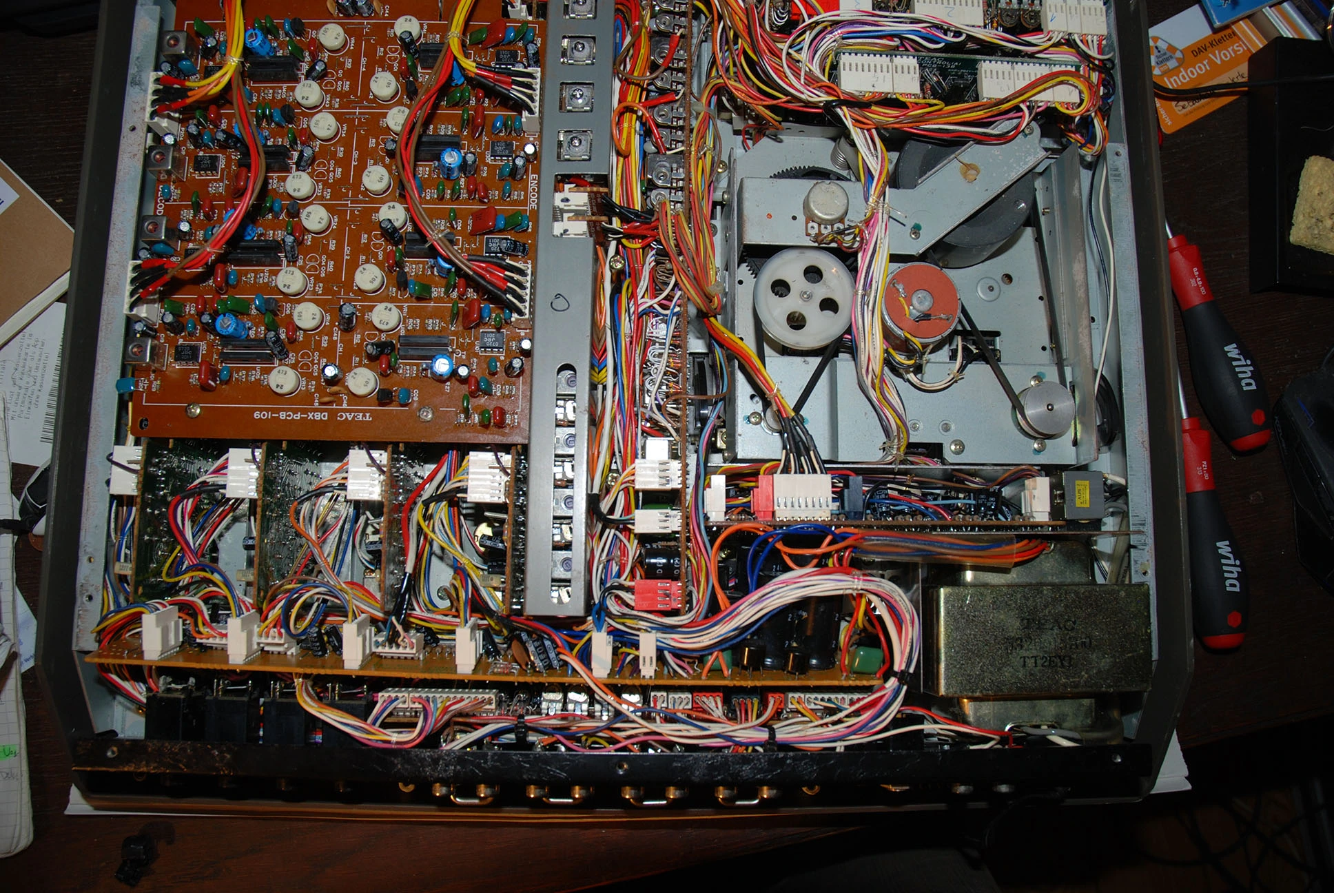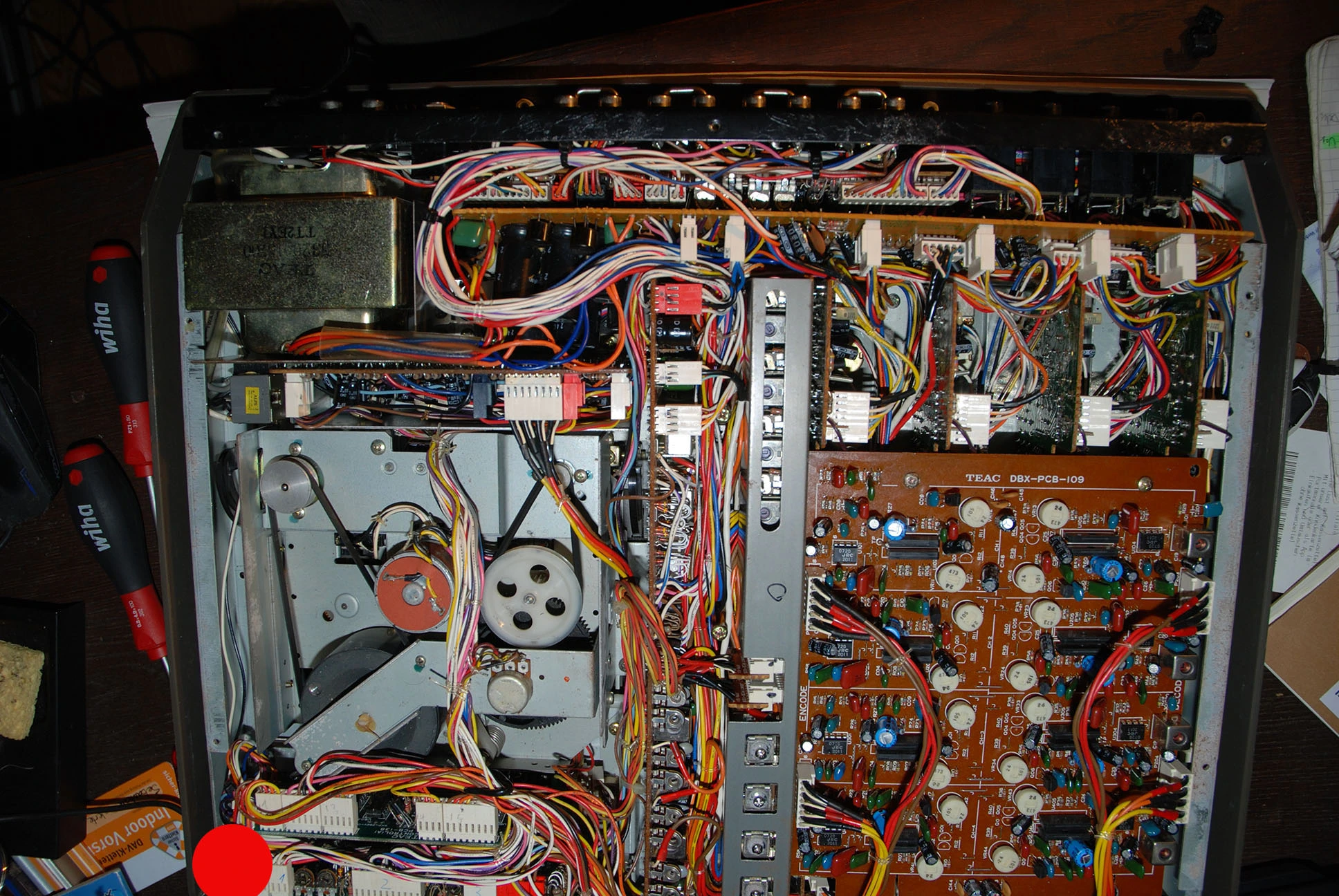 Here's what's strange: When I set the recorder in record-ready mode (Sync + Trks or 4ch, doesn't matter) the record-ready LED is NOT blinking as usual but instead it's only "glowing" really lightly. When I hit REC+PLAY it turns off but the transport is working fine. When I hit PAUSE instead of REC+PLAY it starts to blink as it actually should have been before. When I then hit play the LED is still blinking and it's not recording either. As I said, transport RW, FF, Play, Pause, Stop... seem to work just fine. I have no clue what's wrong. Monitoring the Input singal etc. also works as usual.