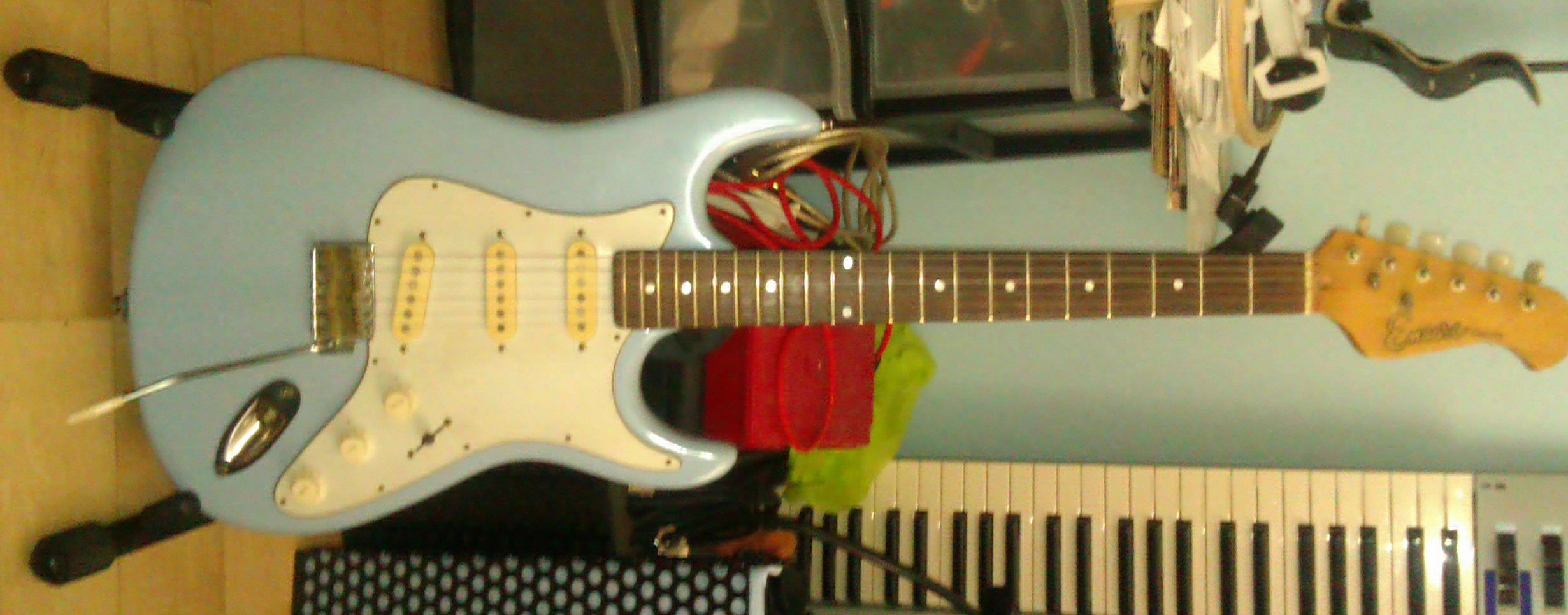 (here it is). Heavy slab of mahogany with a maple cap and a double humbucker, so the response is very Les Paul-like.