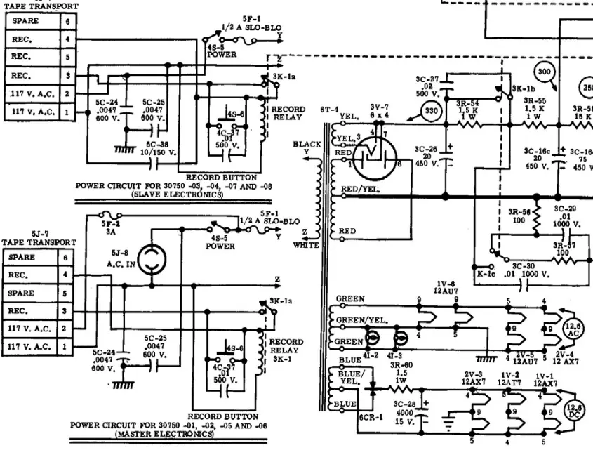 Schematics suggests that the K-1 Relay that sits on the power supply pcb suppose to be engaged when I hit the record, but no 'click' sound or any life sign from the relays. I doubt that both relays had gone bad and they both shows good resistance. I was unable to locate any shorts in the circuits.