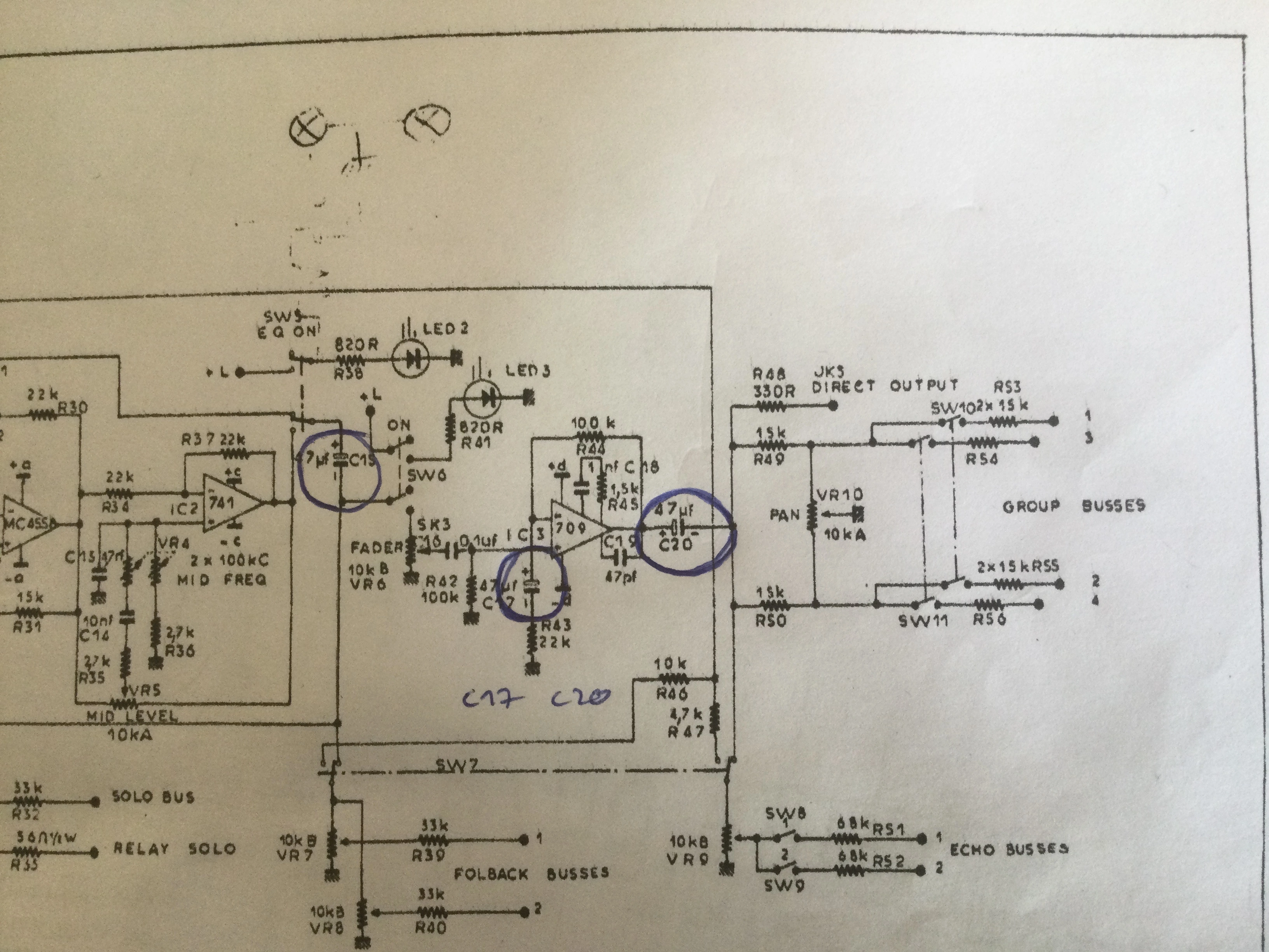 Is there a step that I might be missing ? Something other than the transformer which might be the issue here ? The console is very hard to work on, all of the busses are hard wired, I would have to desolder everything to have access to one channel card...I have had a quick look at the electrolytic capacitors, which all seem fine to the naked eye, but then again that may not mean they are functioning properly.