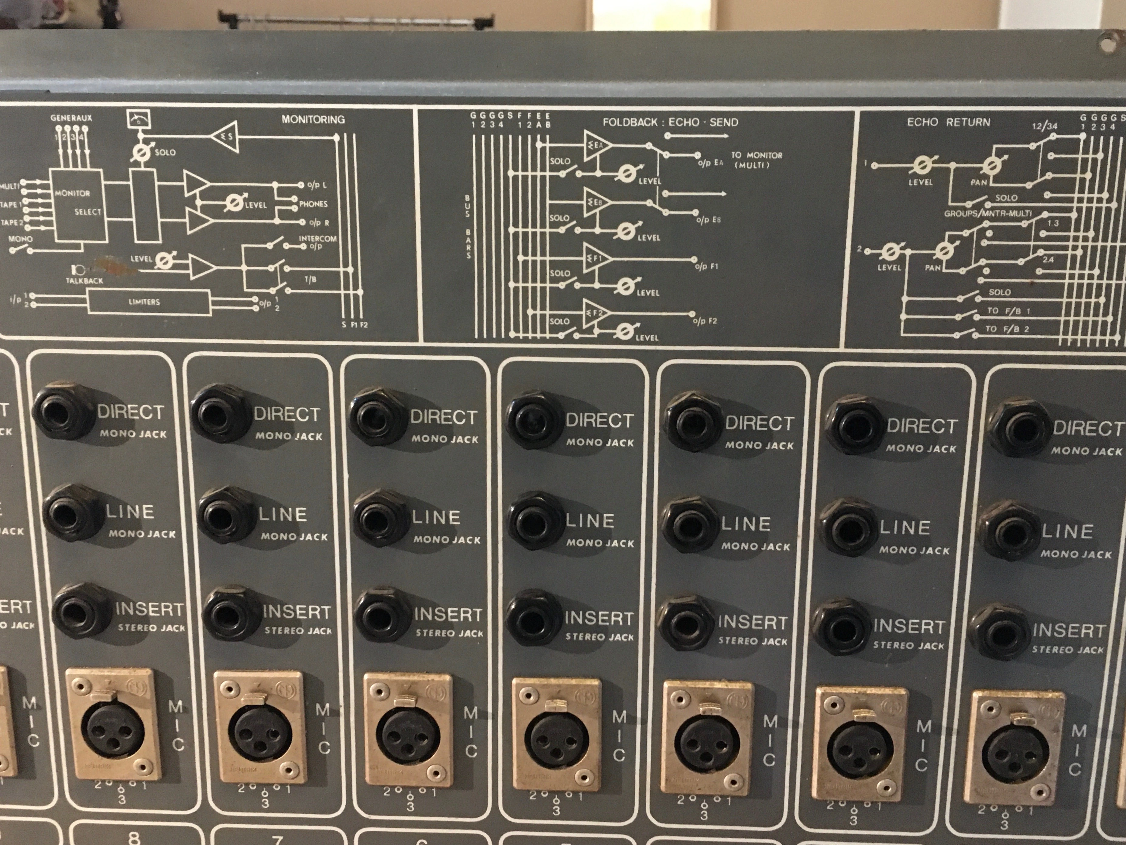 Yep, all of the above settings work as they should on channel 7, that is only after gently moving the card back and forth until I’m getting output, as per my video. Basically the channel itself seems to be working fine, but there must be a shorting of the connection or dry joint somewhere that I just can’t locate. Between the channel card and the way it’s wired to the outputs, I guess. I don’t think it’s coming from any part on the channel. The IC pins have not been bent. I’ve swapped the u709 on channel 7 with the u709 on channel 8, I’ve also tried putting a new T.I 741 in place of the 709, which did not make any difference whatsoever.FOLDBACK - MONITOR: sources LINE input pre EQ pre channel fader