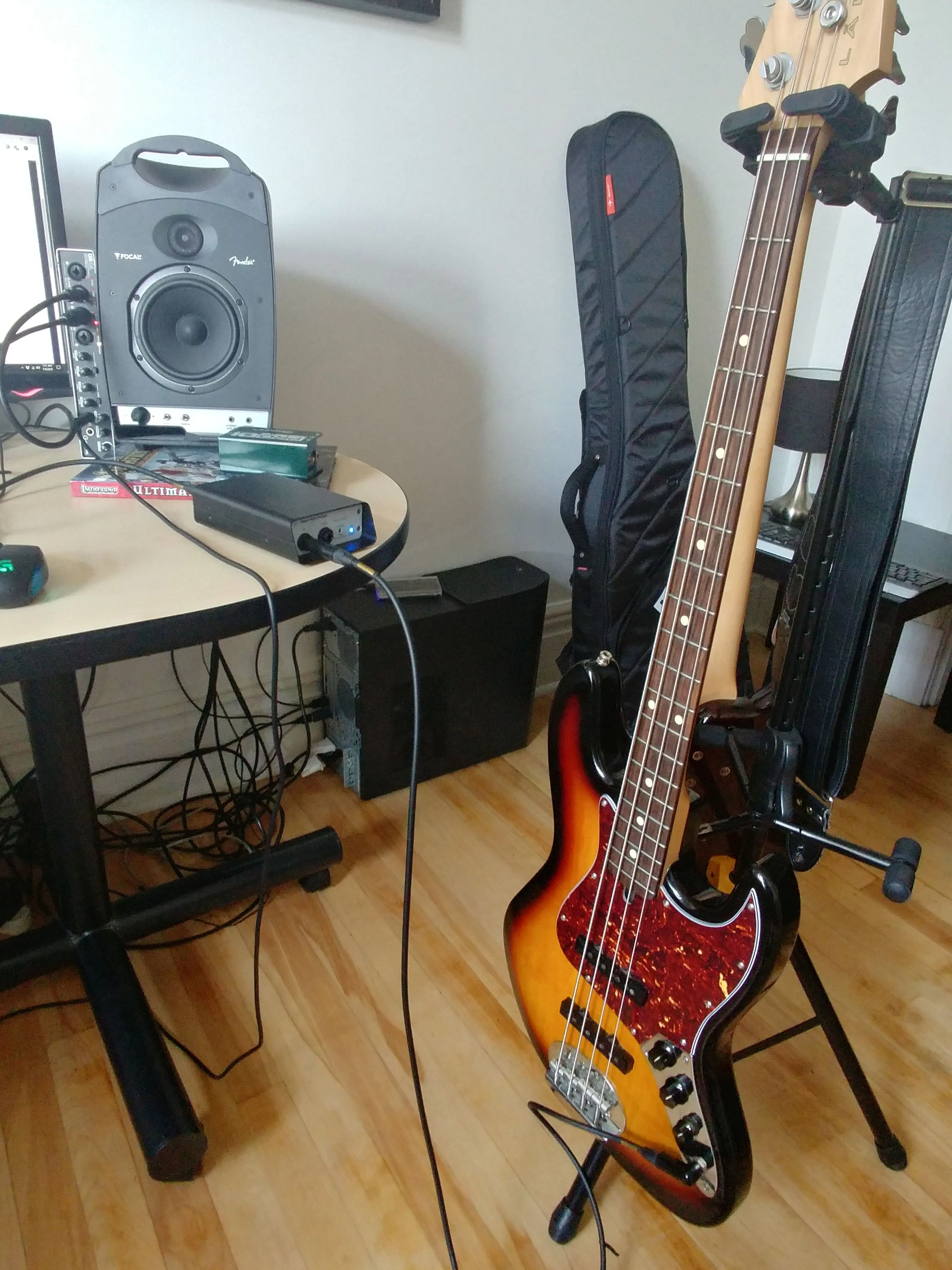 Newly registered here! I'm trying to find help identifying the source of an intermittent noise that's being picked up by my instruments pickups. It's not a 60hz hum. I could deal with a constant noise being part of the "character" of the instrument, but the intermittent nature of this noise kinds of bugs me and I'd really like to get rid of it from my recordings.