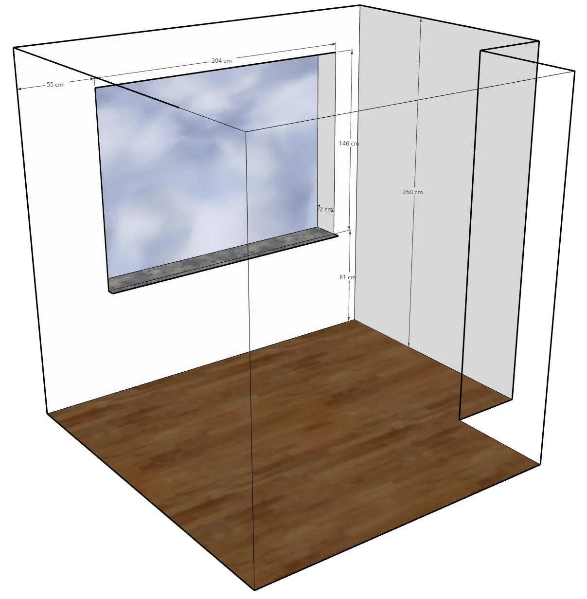 I've attached some imaged of the space in 2D as well as 3D, which I hope will provide you with a decent overview. These are my thoughts so far:
