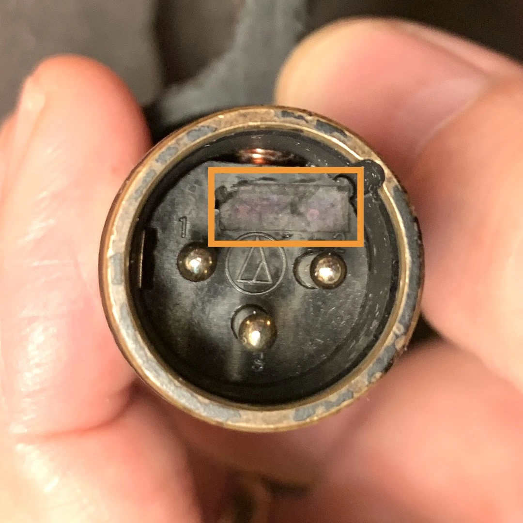 I was dusting off an old mic to consider selling it, and I noticed that it actually has a tiny piece of tape over that. I have no idea if it was original, but my guess is that someone put it there, and I wonder if they did it for a [valid] reason or if they were just chasing some problem and did it for no real [electrical/engineering] reason. (I could take it off and see what happens, but, then, I would like to sell the mic in its current, working condition.)
