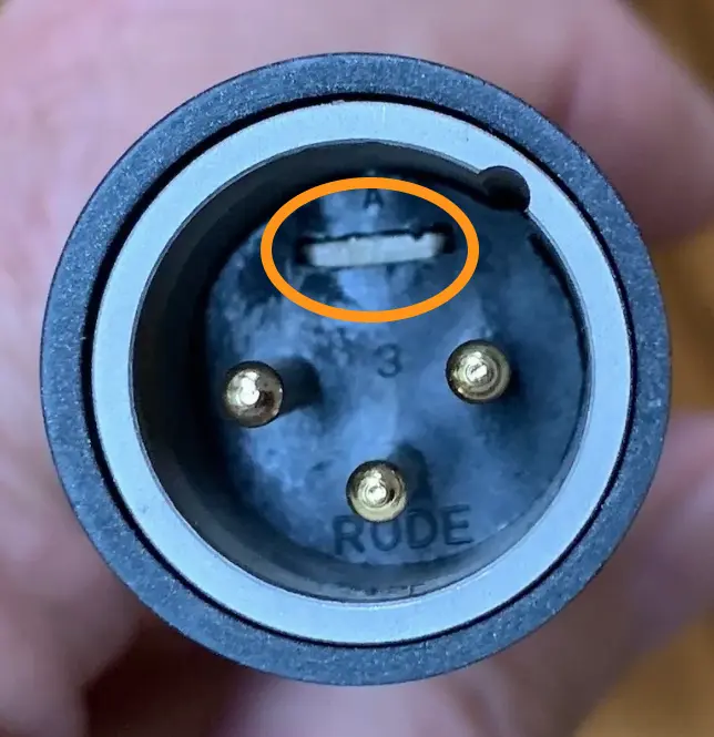 I've noticed in a few XLR male ends (in microphones only, perhaps) that's there's a little piece of metal visible. Is it just something that some makers put in there to prevent rotation? Why is it there?