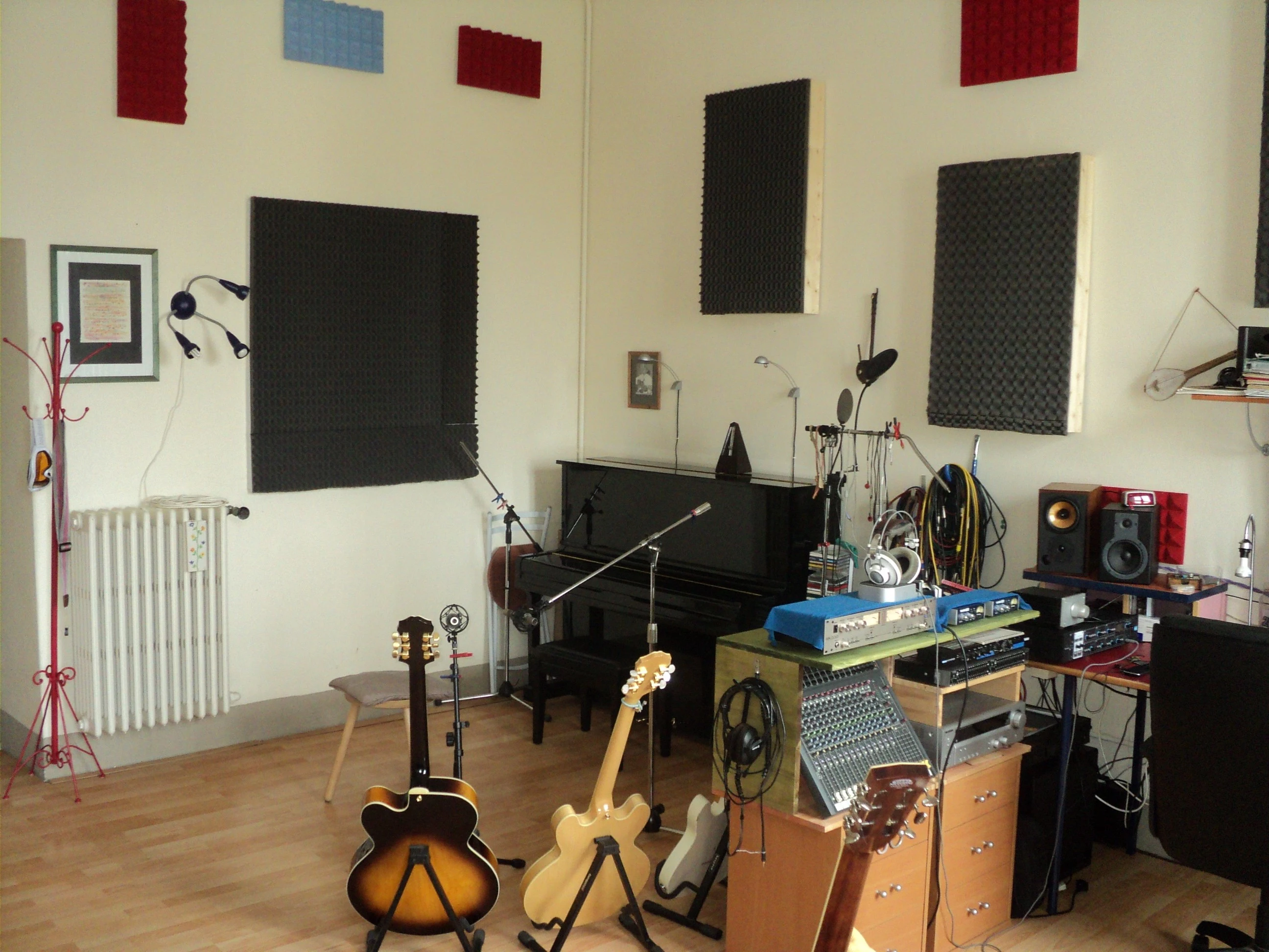 I've been giving my (very poor, in principle) recording room a makeover this weekend; I've ripped out the carpet and I'm laying laminate over wood-fibre underlay. In addition, I'm putting up some acoustic foam to break the flutter effect and have the materials to begin constructing my bass traps. If all this doesn't result in better drum recordings, I don't know what I'm going to do.