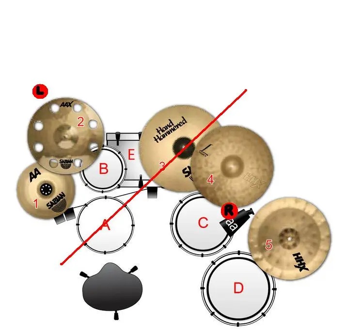 If the mics are in X-Y pattern centered above my snare, then the left mic would pick up only mostly my hats, snare, left crash and maybe a bit of the rack tom. Then the right mic would be picking up my snare, ride, right crash, china, cowbell, floor tom 1 and floor tom 2. I guess that's okay (since it would be imaged very closely to how the kit is set up).